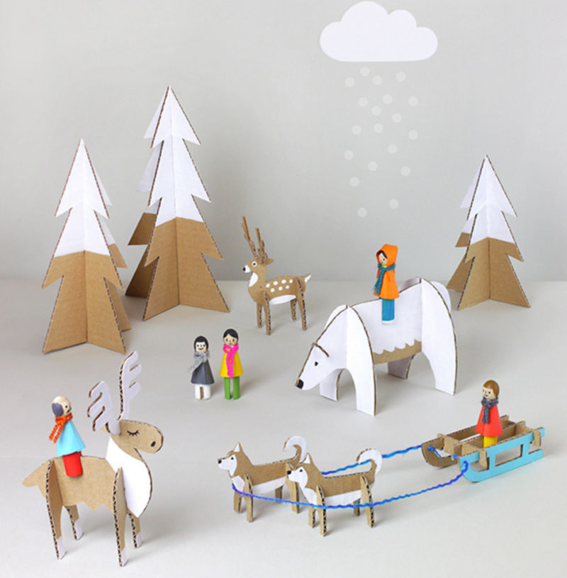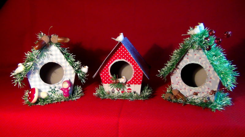 Малките парчета картон и изрезки могат да се използват за изработване на венци и играчки. Можете да ги комбинирате с елхови клонки, плодове, мишлета и брокат. Окачете венеца на панделки или направете група от орнаменти в гирлянди. Картонените фигури се поръсват със "сняг" и се поставят около къщата, в градината или на верандата.