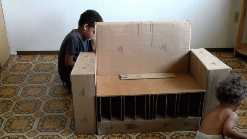 Лабиринтът от кутии е чудесно изобретение, защото децата обичат да пълзят през тунели. Това е не само забавно, но и физически стимулиращо. Прорезите на прозорците и вратите го правят едновременно забавен и декоративен. След активна игра тунелът може да се сгъне и да се прибере в ъгъла или под леглото.