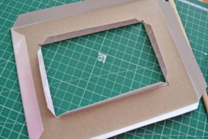 Картонът служи за основа, а след като прикрепите декорациите, добавете малко брокат и лакирайте рамката. Ако се използва велпапе, то може да се използва за създаване на особено оригинални форми и модели.
