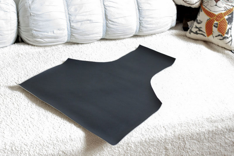 - Изрежете правоъгълник от кожен плат с размери 30 см на 50 см. Това е основната част на панела. Основата може да бъде с абсолютно всякаква форма.
