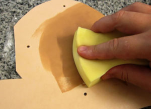 - Подрежете вътрешните ъгли на скосените ръбове. Боядисайте и двете страни. След оцветяването поставете парчето под съединителя, за да го предпазите от изкривяване по време на сушенето.