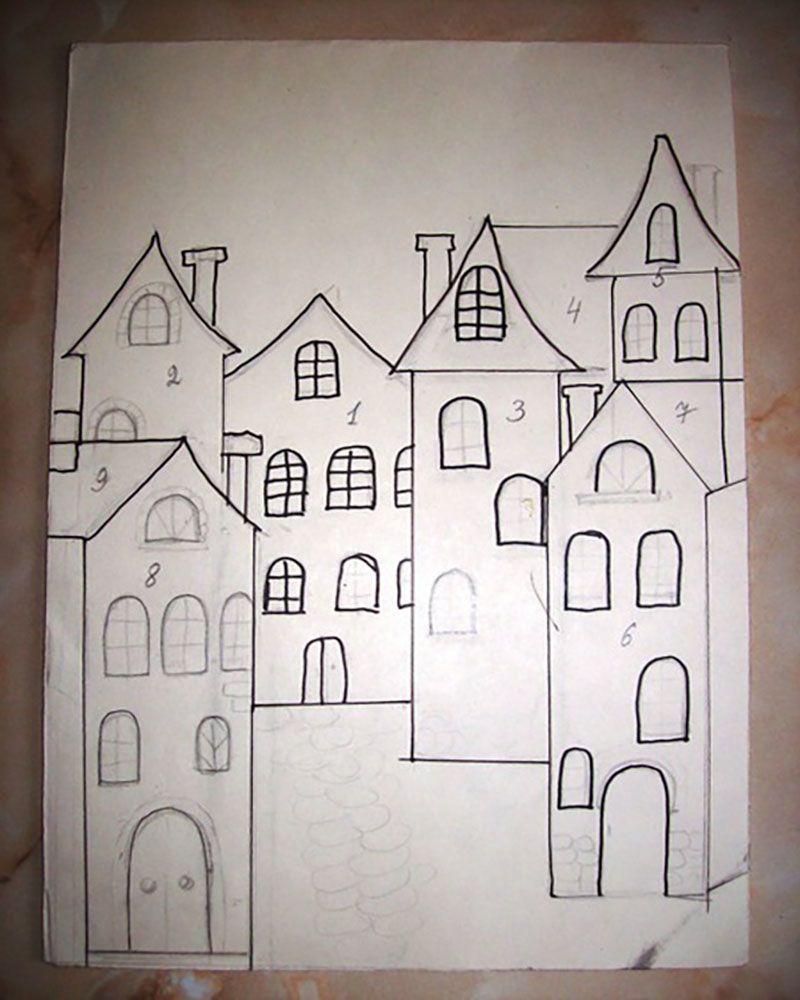 - Комбинирайте частите и ще получите покрива на къщата. Обходете изрязаните места с шкурка.