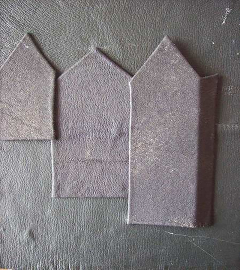 - От растително дъбена кожа с минимална дебелина 3,5 mm изрежете 4 парчета с необходимия размер.
