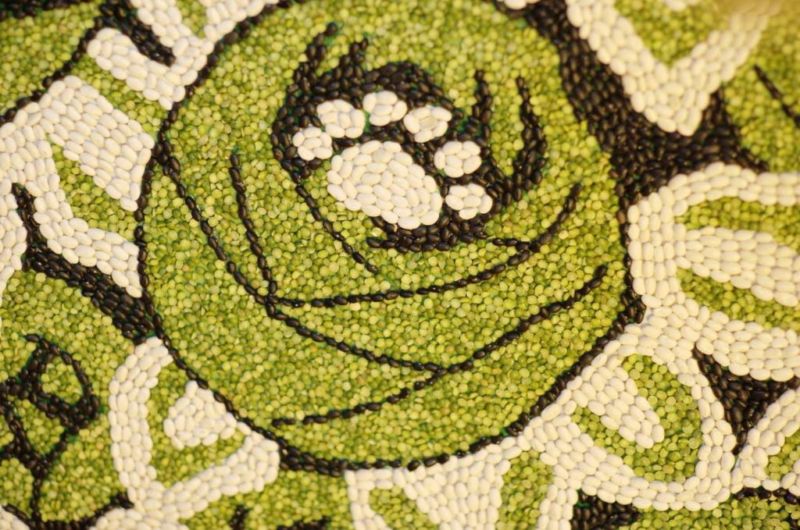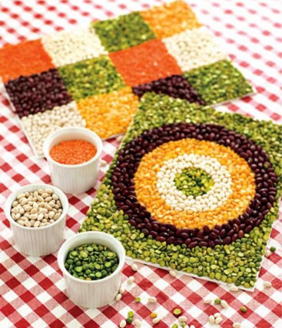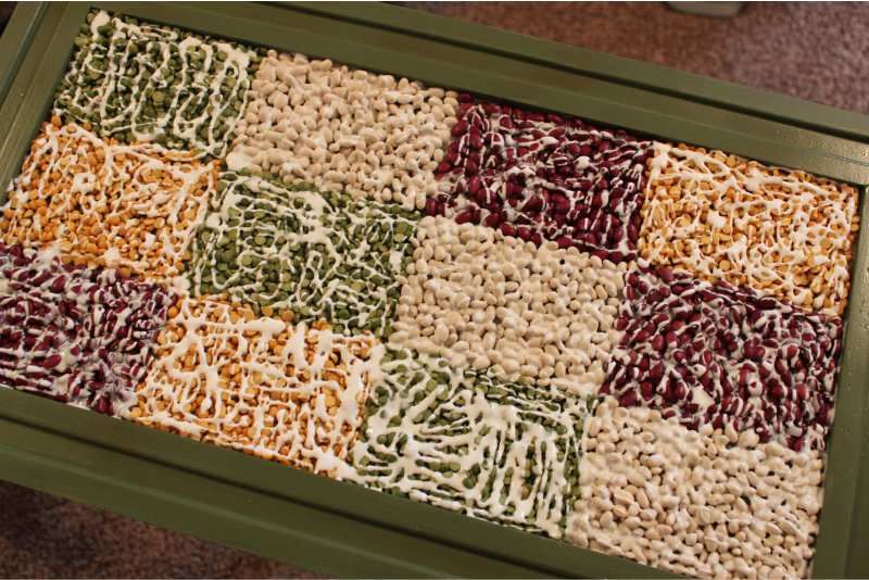 Моделът може да бъде цветя от боб, линии от грах, редуващи се ленти от ориз и елда и т.н. Идеите са неограничени.