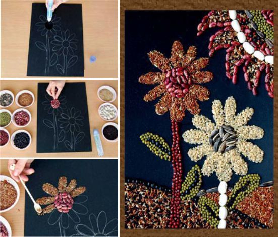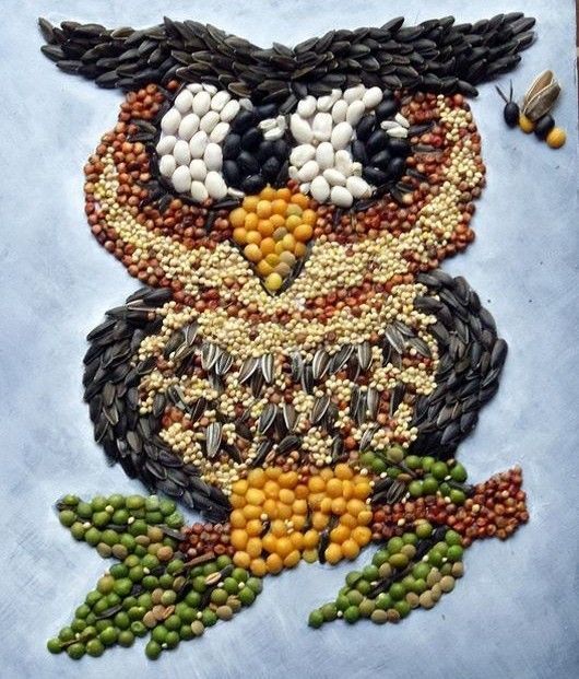 За децата изработването на изделия от зърнени храни и семена е не само забавно занимание, но и същевременно работата с тези материали помага за развитието на фината моторика.