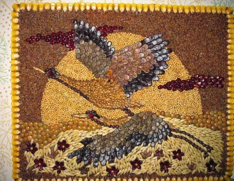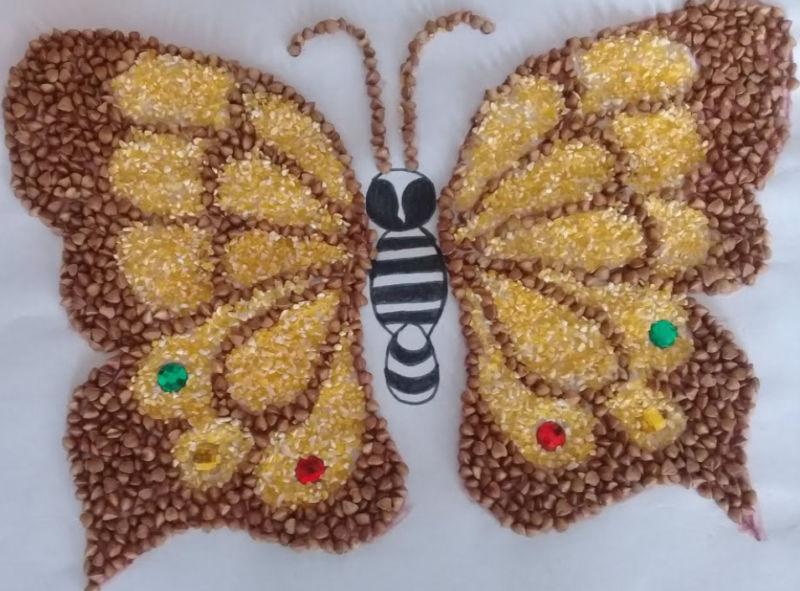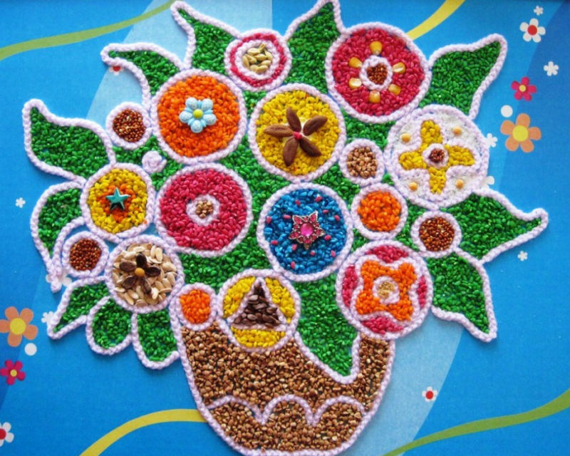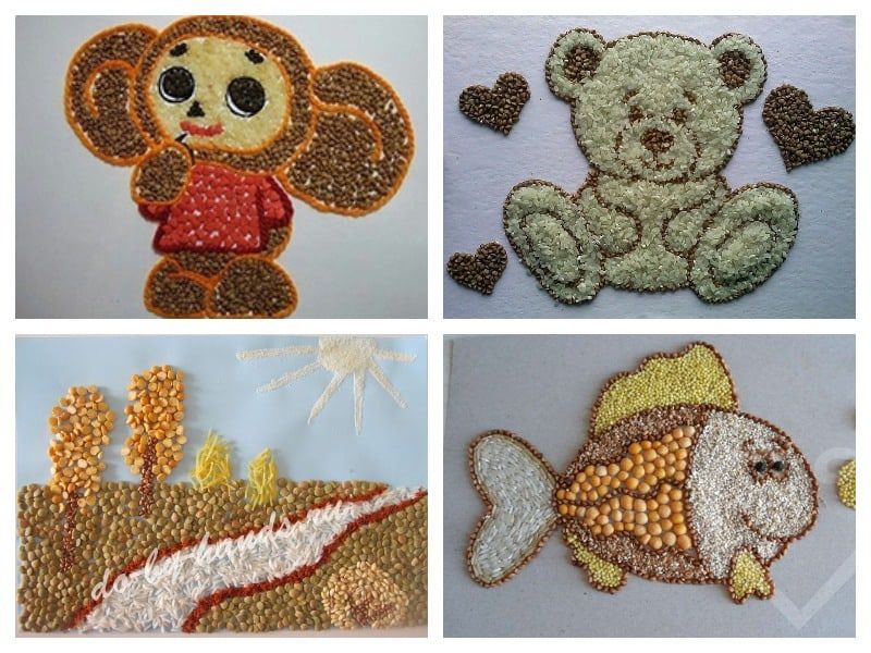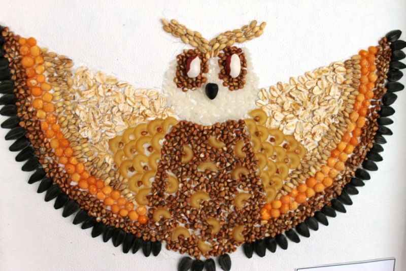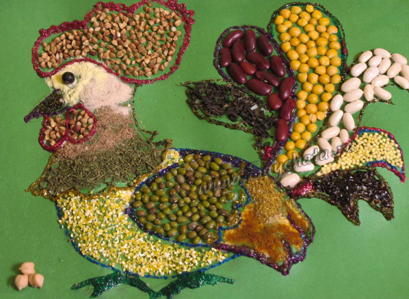 Най-лесните занаяти са апликациите с използване на зърнени храни. Във всеки дом домакините могат да намерят неизползвани каши. Затова материалът е много достъпен и лесен за използване.