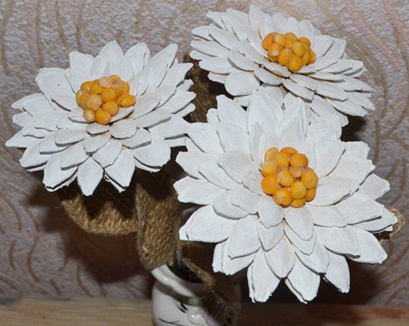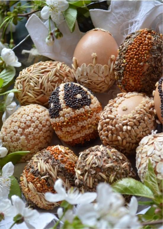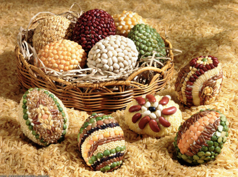 За да придадете необичайни нюанси, най-добре е да използвате бял боб, ориз и тиквени семки за тази процедура.