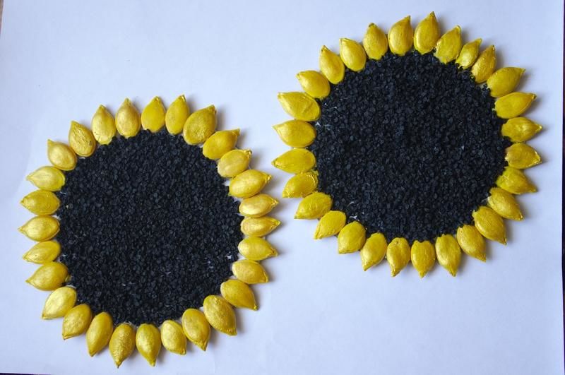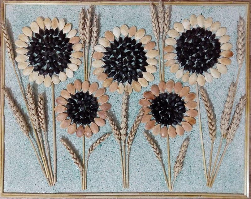 Възможно е да се направи занаятчийско изделие от слънчоглед. За целта растението се рисува върху картон. Всяка част е облицована с различен вид. Вътрешността на цветето може да бъде покрита със семена, венчелистчетата - с просо или с грис, боядисан в жълто.