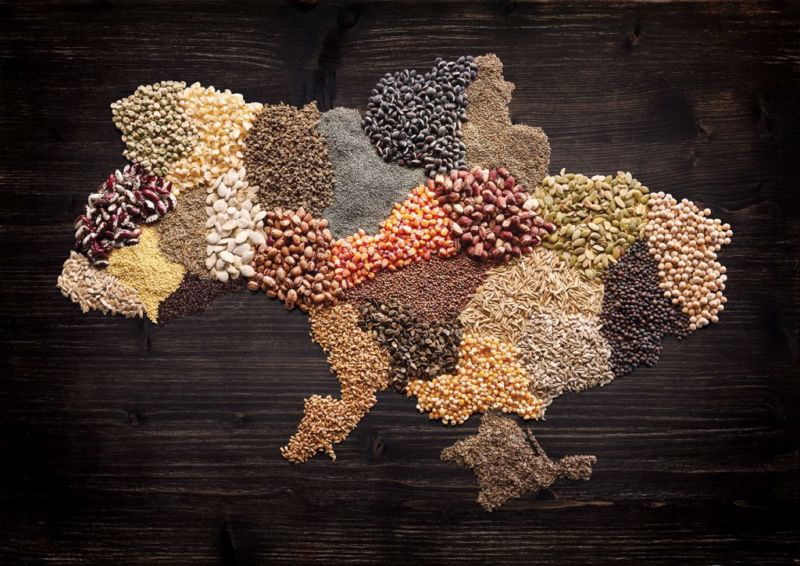 След това нанесете лепило и залепете зърнени, житни и бобови култури.