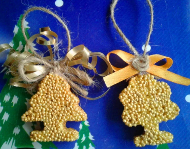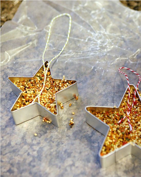 - Могат да се създадат шаблони или орнаменти, а като допълнителна украса да се използват шаблони, украсени със зърнени храни под формата на камбанки, звезди или коледни елхи.
