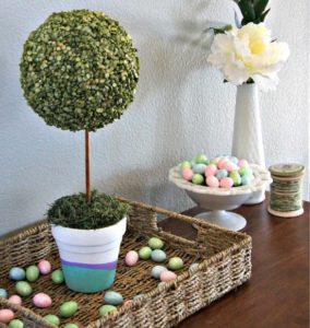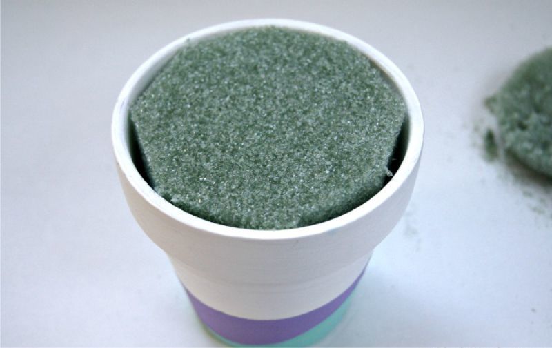 - Трябва да се вземе саксия, която е специално закупена за топиария. Поставете пълнежа под формата на цветна пяна. След това се поставя стеблото. Мястото в саксията трябва да се запълни с мъх.