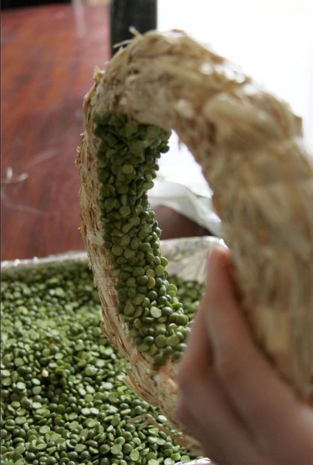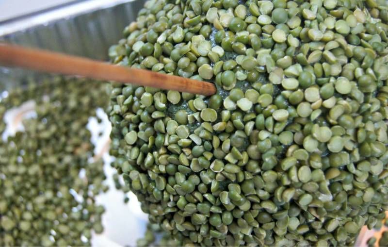 - Не бързайте да лепите граховите зърна. За целта малка площ се намазва с лепило и към нея се прикрепва грах (за предпочитане счукан).