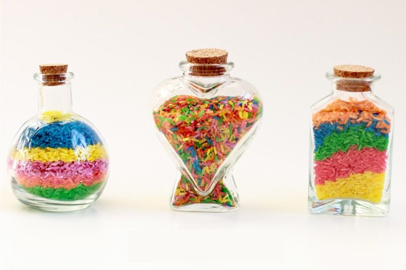 Изсипете съдържанието на торбичката върху чиния и я оставете да изсъхне. Остават оцветени зърна.
