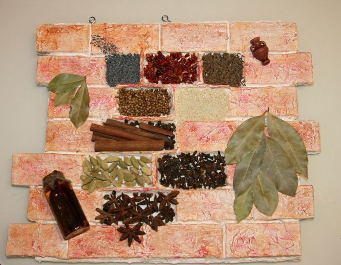 Първият тип е плоско приложение. Трябва да вземете лист картон, върху който да нарисувате скица. Това може да е модел, разнообразие от орнаменти. Вътрешните части на контура трябва да се запълнят с лепило. Изсипете зърнените храни, зърната, семената и т.н. върху тях.