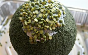 Първо изсипете зърнените храни в купа. Заготовката с форма на топка се покрива с лепило. След това го оваляйте в грис. Ако се избере грах или елда, тя се разточва веднъж. При оризовите и просените каши трябва да се направят два слоя.