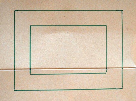 С помощта на линийка и молив отбележете върху повърхността на картона границите на рамката. Трябва да се изреже. Трябва да помислите за дизайн, който да го украси. За по-лесна ориентация можете да маркирате зоните и да си представите какъв материал е подходящ.