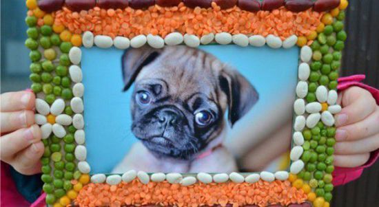 За да изглежда рамката за снимки много по-ярка, можете да направите рамка за снимки със собствените си ръце и да използвате зърнени култури в процеса. А ако добавите магнити, те могат да се прикрепят към хладилника.