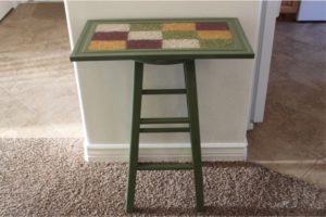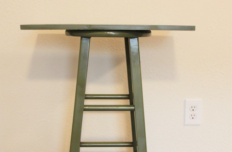 - За да поддържате стаята чиста, можете да поставите пластмасов чаршаф на пода. Нанесете слой грунд върху получената табуретка и след като изсъхне, я боядисайте два пъти в същия цвят.