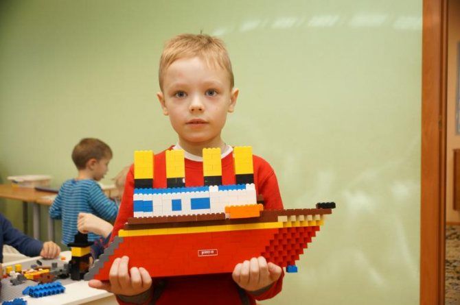 Детето се научава да създава конструкции, следвайки ясни инструкции, или да измисля свои собствени сюжети. Развива способността спокойно да преживява малки неуспехи и упорито да следва целта.