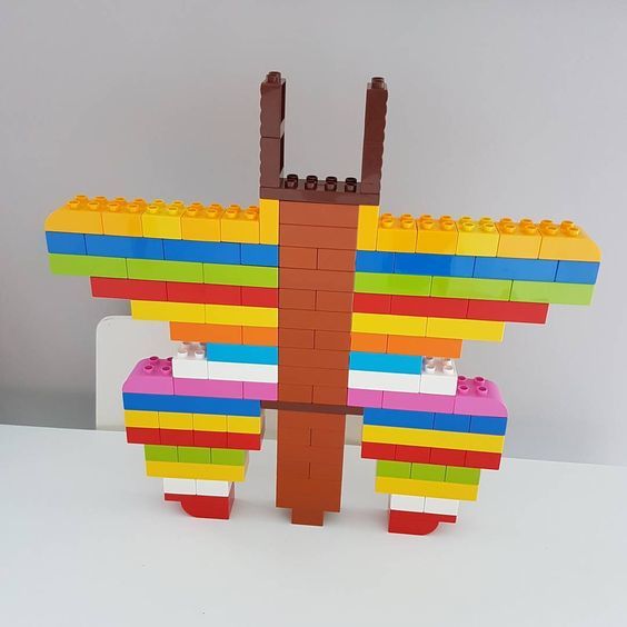 - Пеперудата от лего също трябва да е плоска и симетрична. Размерът на крайния продукт зависи от броя на парчетата.