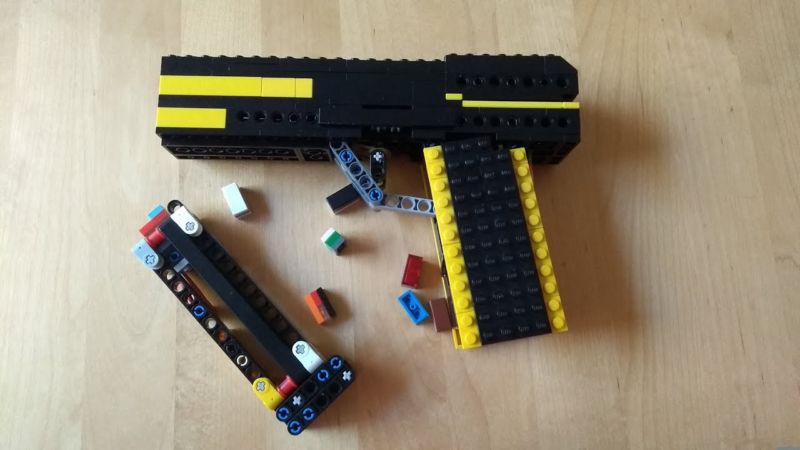 - Следващата стъпка е сглобяването на приклада. Той може да се сглоби и отделно от големите и средните блокове, след което просто да се прикрепи към цялостната конструкция.