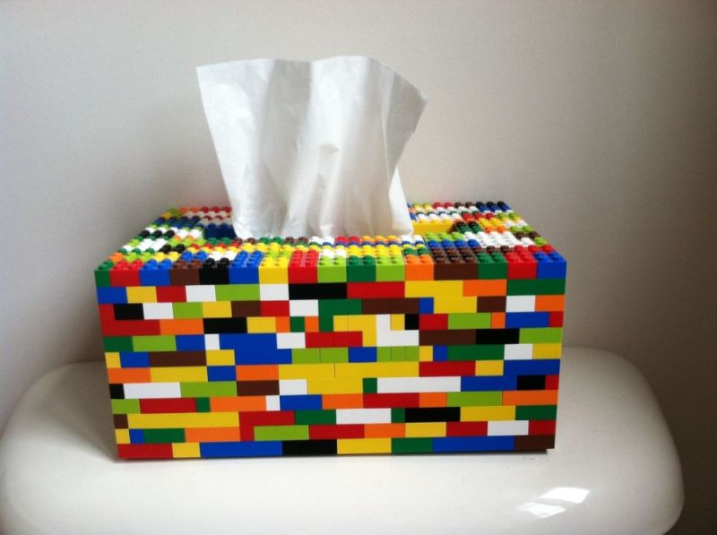 - Всяка картонена или пластмасова кутия може да се използва като основа. Формата се избира според личния вкус на всеки. Слоят лего ще бъде външният слой.