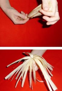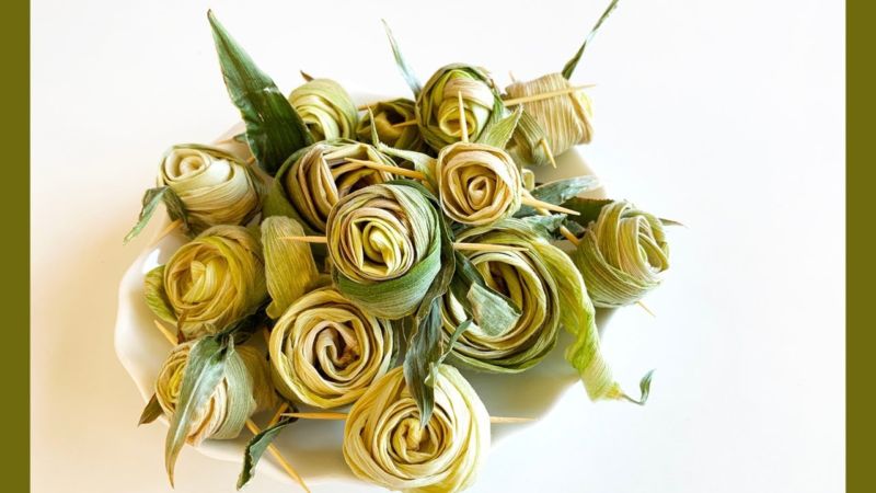 Лесно се прави красиво цвете от царевични листа. Могат да се използват изсушени или пресни листа.