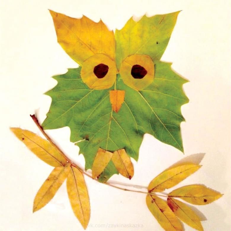 С достатъчно материали можете да направите чудесен занаят на тема есен в училище. Листата от върба, бреза и дъб са най-подходящи за приложение при совите.