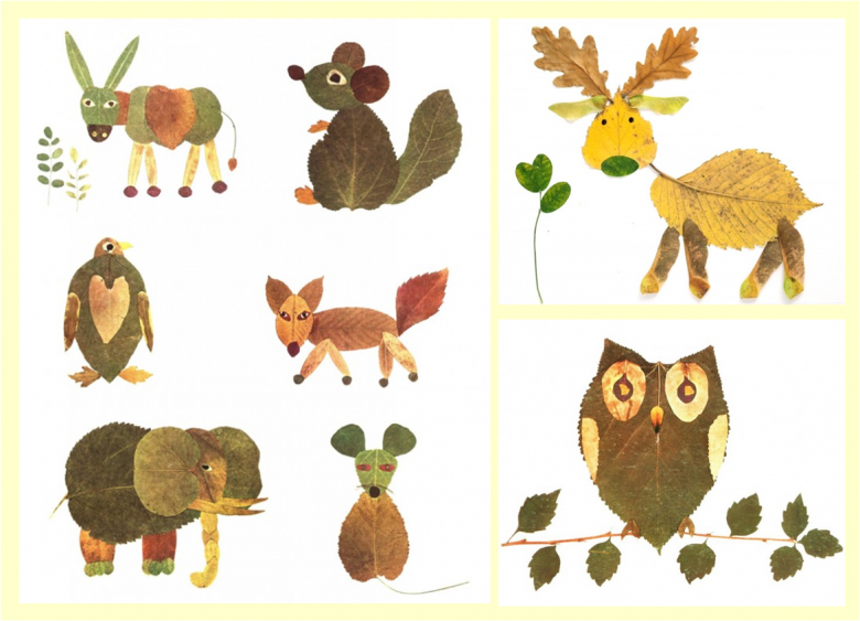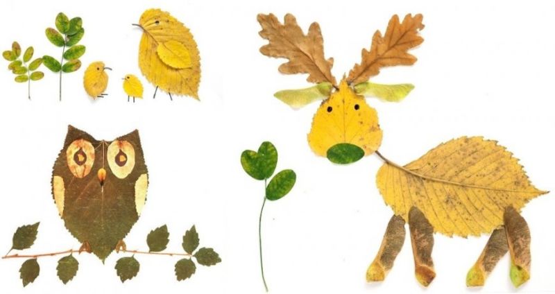Децата обичат да изработват фигурки и изображения на животни от даровете на природата. Цветните есенни листа ще вдъхновят креативността на младите занаятчии.