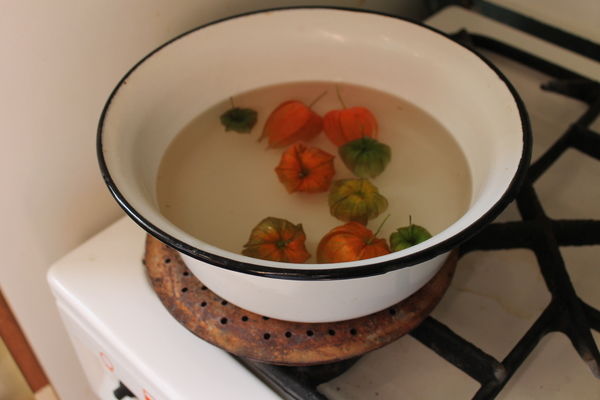 Поставете прясно събраните листа в тенджера с разтвора. Доведете разтвора със суровината до кипене, след което оставете на слаб огън за половин час.