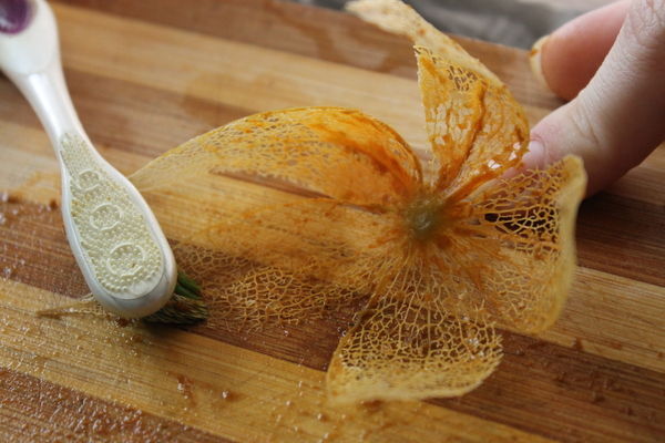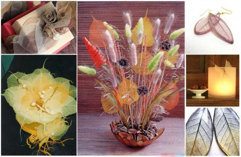 Понякога се използват скелетирани листа, за да се придаде необичайна текстура на изделието. Те се получават, като се обработят с разтвор на сода за хляб. За приготвянето му се взема 1 част сода на 4 части вода.