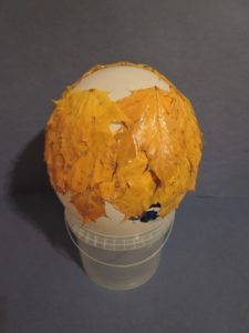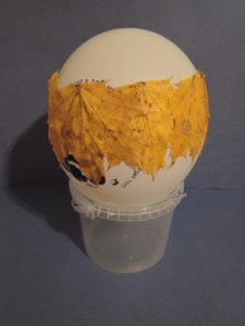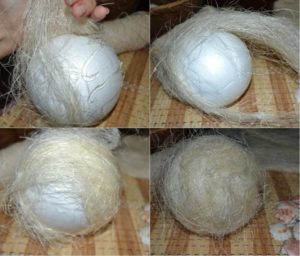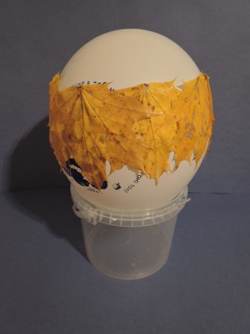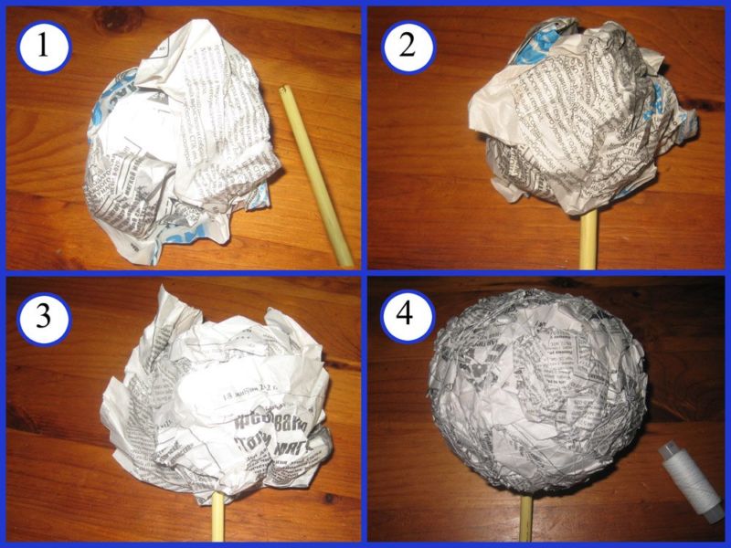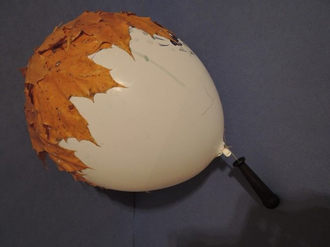 Покритите с лепило листа се поставят върху топката на няколко слоя. Последният слой е допълнително покрит с лепило за по-добро фиксиране. Оставете изделието да изсъхне за 3 дни. Пробийте балона и извадете фрагментите.