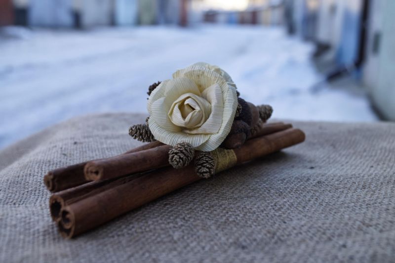 Листата са плътно прикрепени едно към друго в основата. По желание украсете със сухи цветя и жълъди.