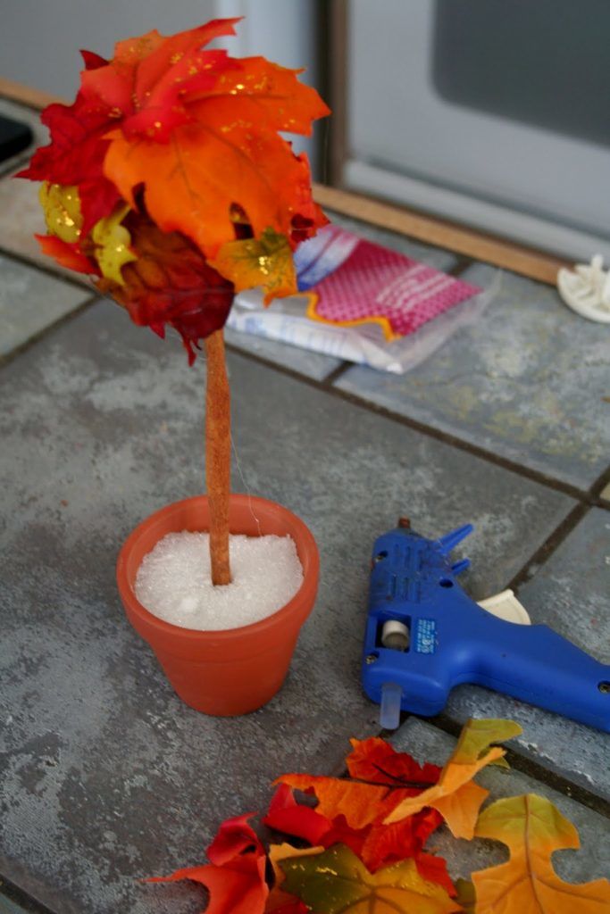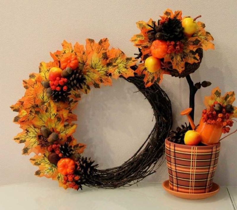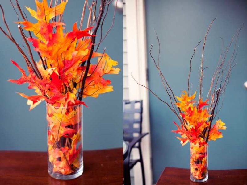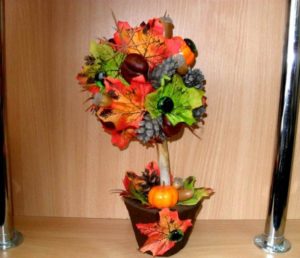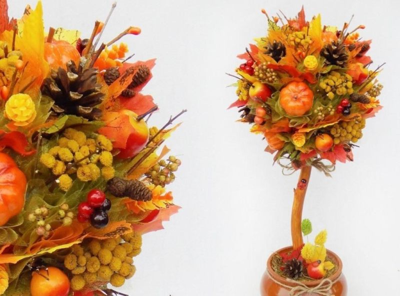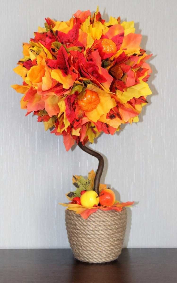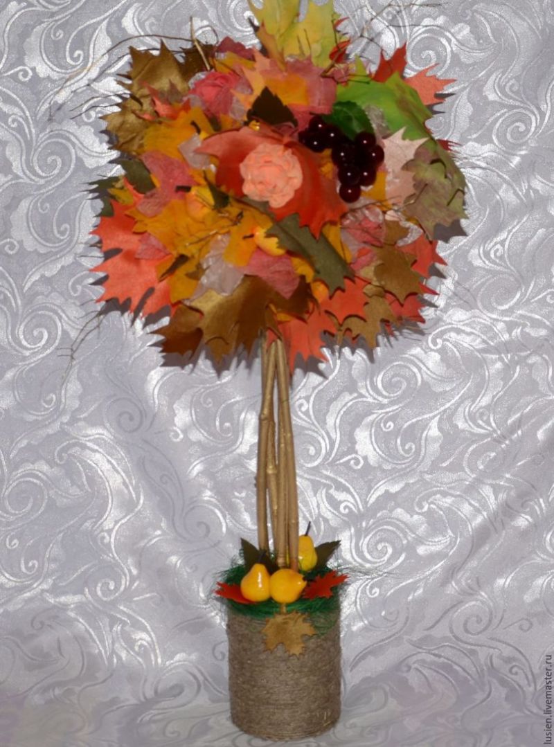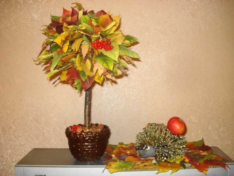 Декоративно дърво с изсъхнали есенни листа - интересен елемент в тематичната декорация на интериора, чудесен подарък за рождени дни.