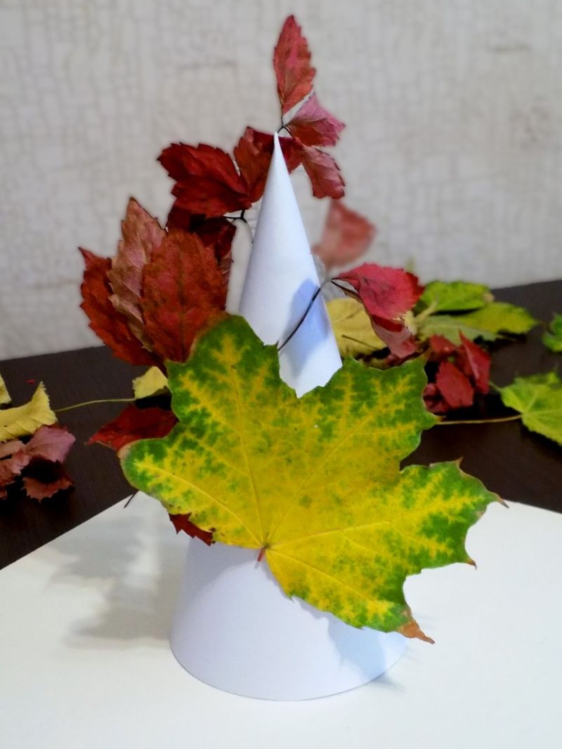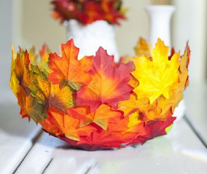 Оригинална ваза, изработена от разноцветни листа, за украса на всеки интериор. Големите кленови листа са най-подходящи за направата му. Други материали могат да се намерят у дома: лепило PVA, балон, вазелин.