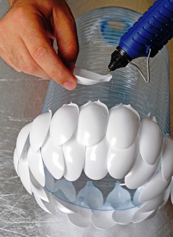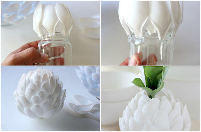 Вазите са с най-различни форми, но принципът е един и същ - пластмасовите части се залепват за буркана: