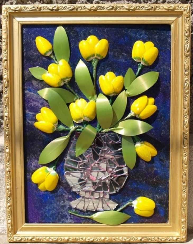 Първите произведения на изкуството от този материал - обикновено различни цветя и листа. В края на краищата формата на самата лъжица е много подобна на венчелистче, така че творческите възможности са безкрайни.