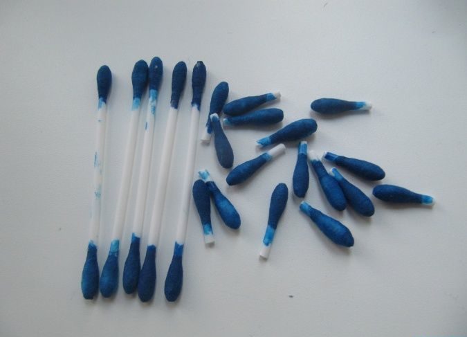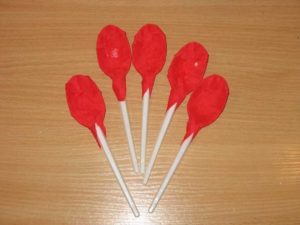 - Боядисайте меката част на пръчиците с червена боя, изсъхнете и отрежете цветните части.
