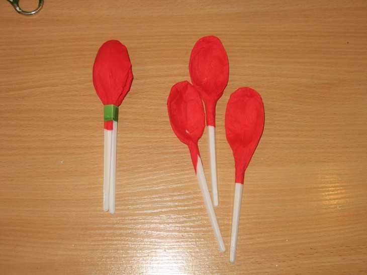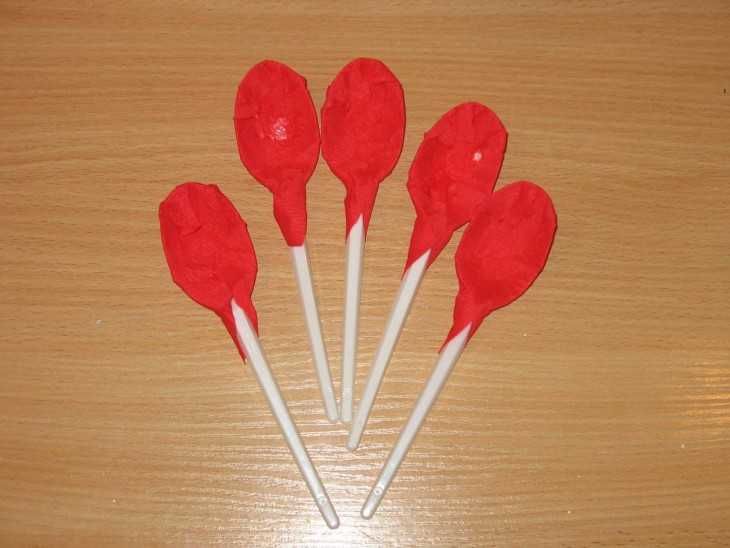 Съвет: Ако лъжиците са бели, можете да ги боядисате с акрил, след като ги направите.