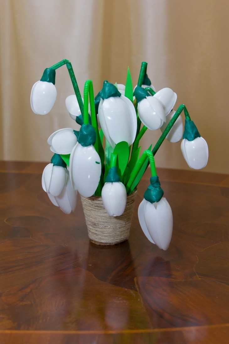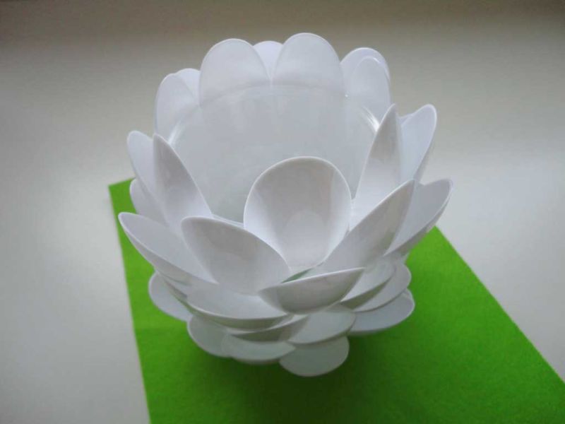 Разгледахме основните видове флорални изделия от пластмасови лъжици, сувенири и коледни украси. Но не е необходимо да ограничавате въображението си с това.