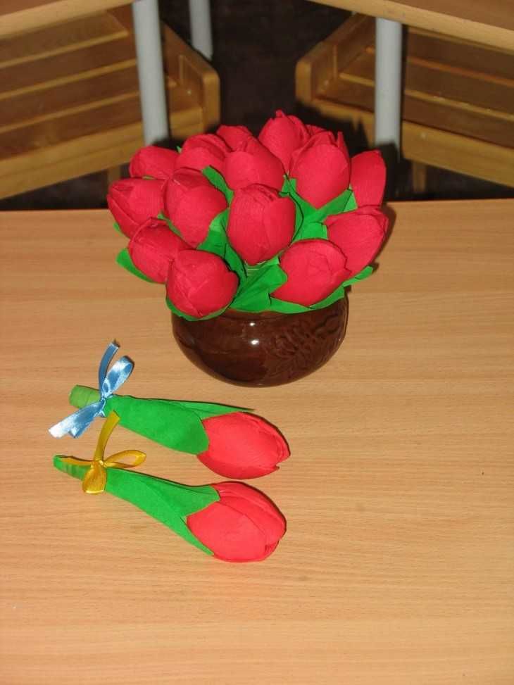 Това е прост, но интересен модел и ако някой харесва елегантни лалета, можете да направите цяло легло.