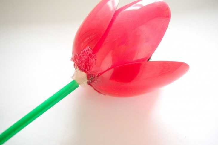 - Когато венчелистчетата са заедно, отрежете дръжката, с изключение на средната лъжичка, която ще бъде стъблото.