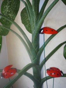 Съвет: Ако направите няколко божии крачета, можете да ги закрепите върху зелените листа, като повдигнете крилата от ръба - все едно насекомото излита.