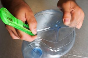 - Отрежете горната част на кана, като запазите конуса и частта с формата на цилиндър.