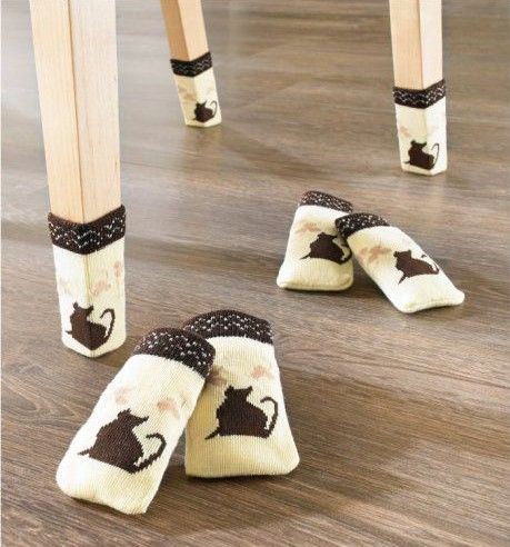 Старите цветни чорапи могат да се използват за украса на краката на маси или столове. Всяка от тях може да бъде отрязана от стъпалото, както и от горната част, да се зашие от едната страна и да се постави на крака. Закрепете ги с ластици, за да се задържат на място.