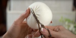 - Дръжте ролката и я навийте. Придържайте с пръсти, за да не се разплете пъпката.