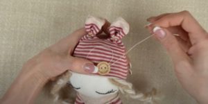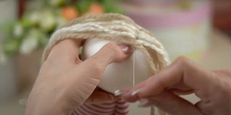 - Дулото е оформено с конец. Носът и устата са бродирани, а на местата за очите са пришити мъниста.