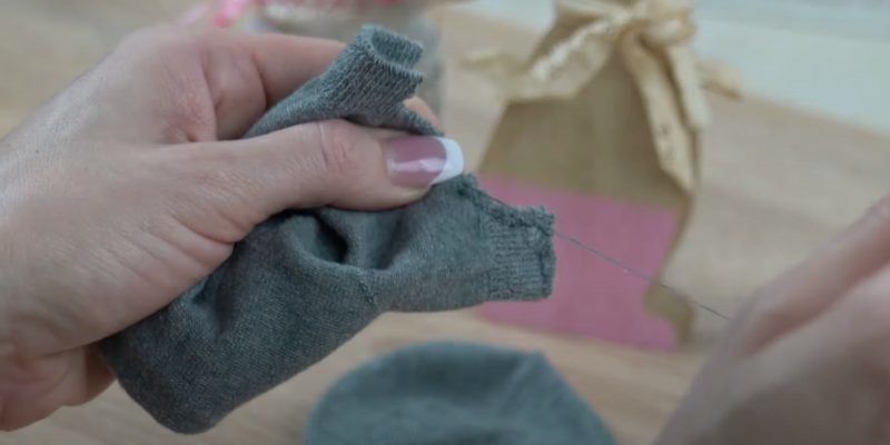 - Чорапът може да бъде с всякакъв размер, но чорапът за възрастен трябва да бъде подрязан поради дължината му. Петата се отрязва и полученият отвор се зашива и зашива. Ако петата не е прекалено изразена, тя може да се остави на място.