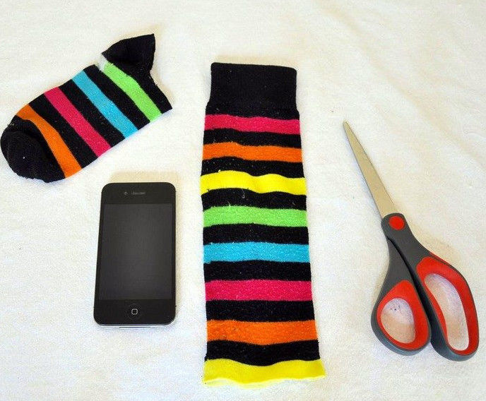 Сред лесните занаяти от чорапи е и калъф за такава важна притурка. Процесът на шиене ще отнеме не повече от 15 минути. Освен че аксесоарът ще бъде практичен, той ще бъде и уникален. Декорацията може да бъде абсолютно всякаква - от лепенки до мъниста и панделки.