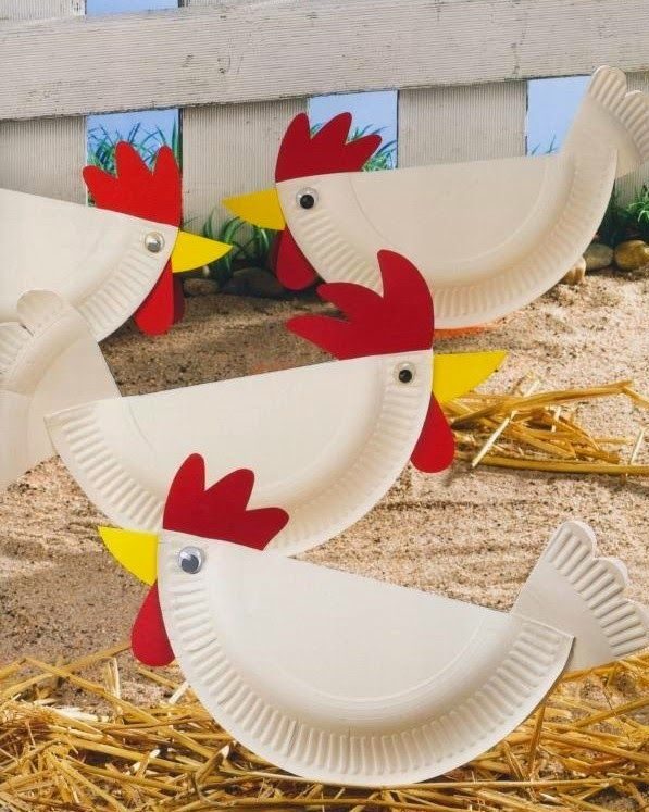 Много е лесно да се направи занаятчийско изделие от петел. Основата е бяла хартиена чиния, червена и оранжева хартия и малко прозрачно копче (бяло с черни петънца).